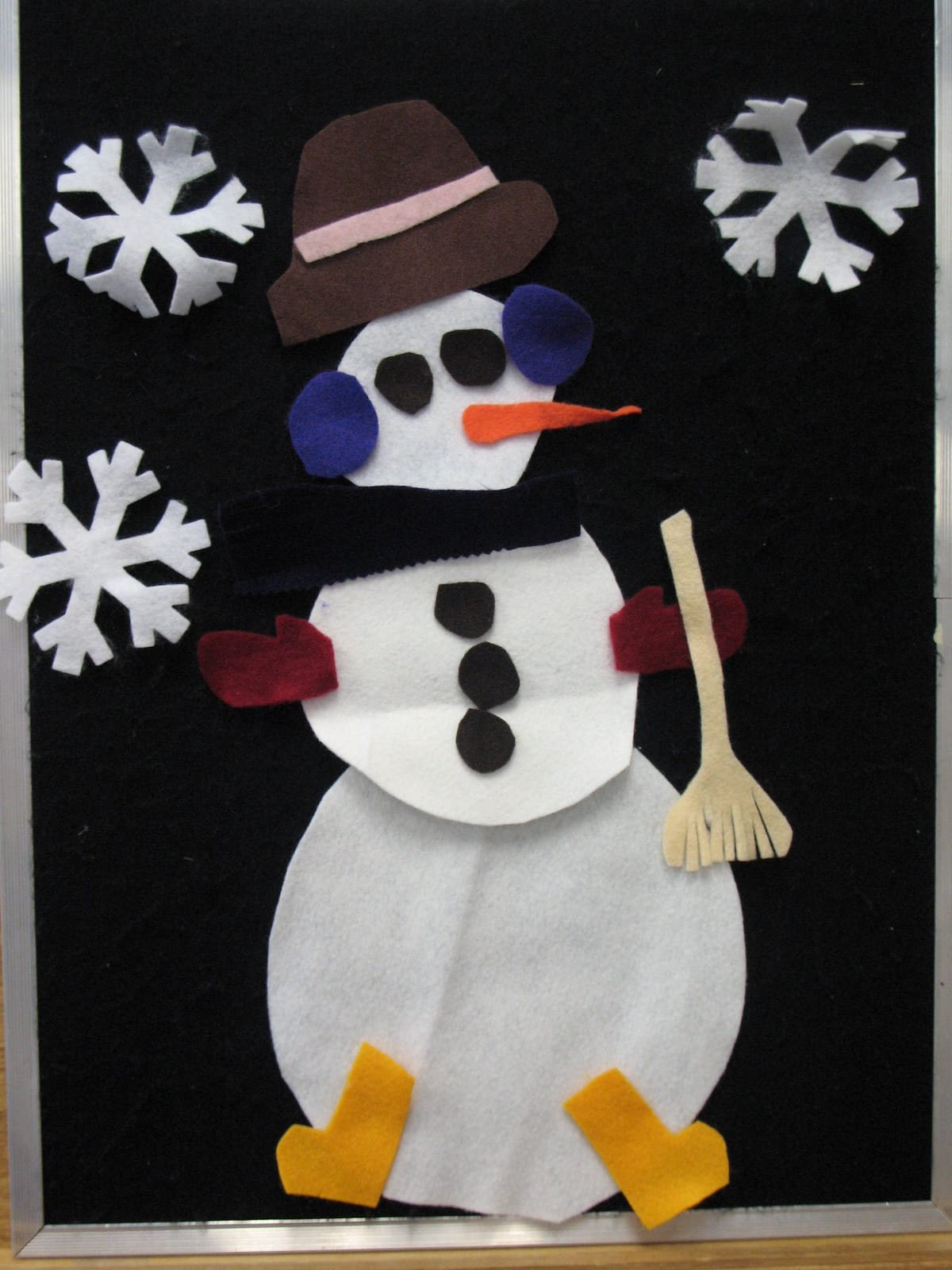 All You Need for a Snowman written by Alice Shertle and illustrated by Barbara Lavallee is one of those “perfect for a storybox” books. The plot is simple – all you need for a snowman is some snow, rolled into one big ball. That’s all. Except…for a middle-sized ball, and a small one, and a hat, etc. The text has a great rhythmic flow and the pictures are colorful and large enough for group sharing. But because it’s all about building a snowman, it’s the perfect book to make a feltboard storybox. Even folks who are craft-challenged like me can cut three white circles out of felt! Ms. Marge, our library’s craft guru, made the feltboard pieces you see below. You can build the snowman piece by piece as you read the story aloud to your group, then hand out pieces to kids to help you build the snowman during your rereading or picture-walk through the book. Not enough pieces to go around? Use a diecut machine to make lots of snowflakes – you need lots of snowflakes to make a snowman! After storytime is done, put the book and the felt pieces in the storybox by a feltboard so little ones can go through the book and make the snowman on their own. Felt pieces, a felt board, and a great book – that’s all you need to make a snowman storybox!